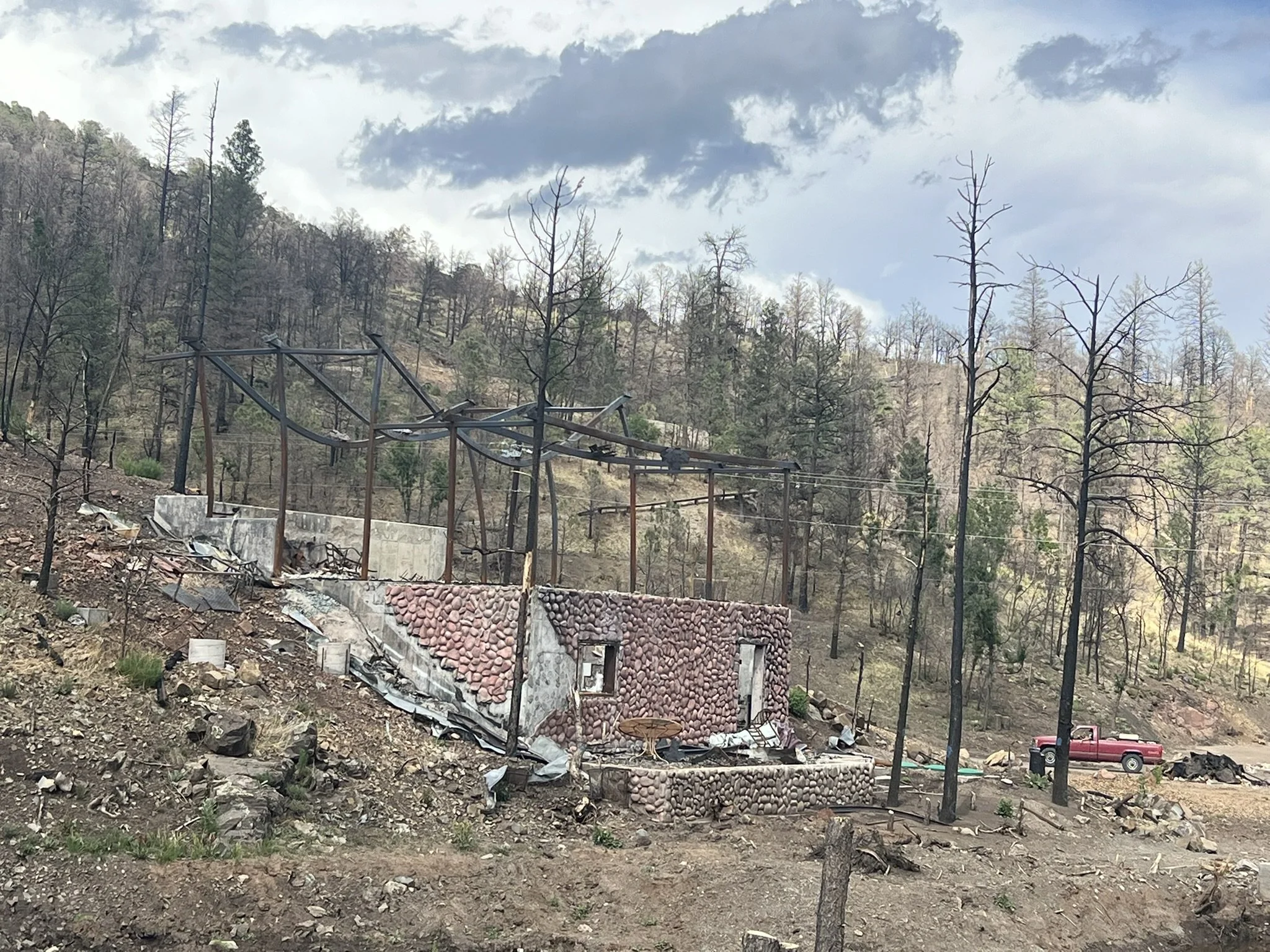 Still, the fast-moving fire consumed swaths of trees, homes and businesses, like the well-known Swiss Chalet Inn and the Alto Ski Shop just north of Ruidoso. And sadly, two people perished, including a popular local musician who’d been living at the inn.