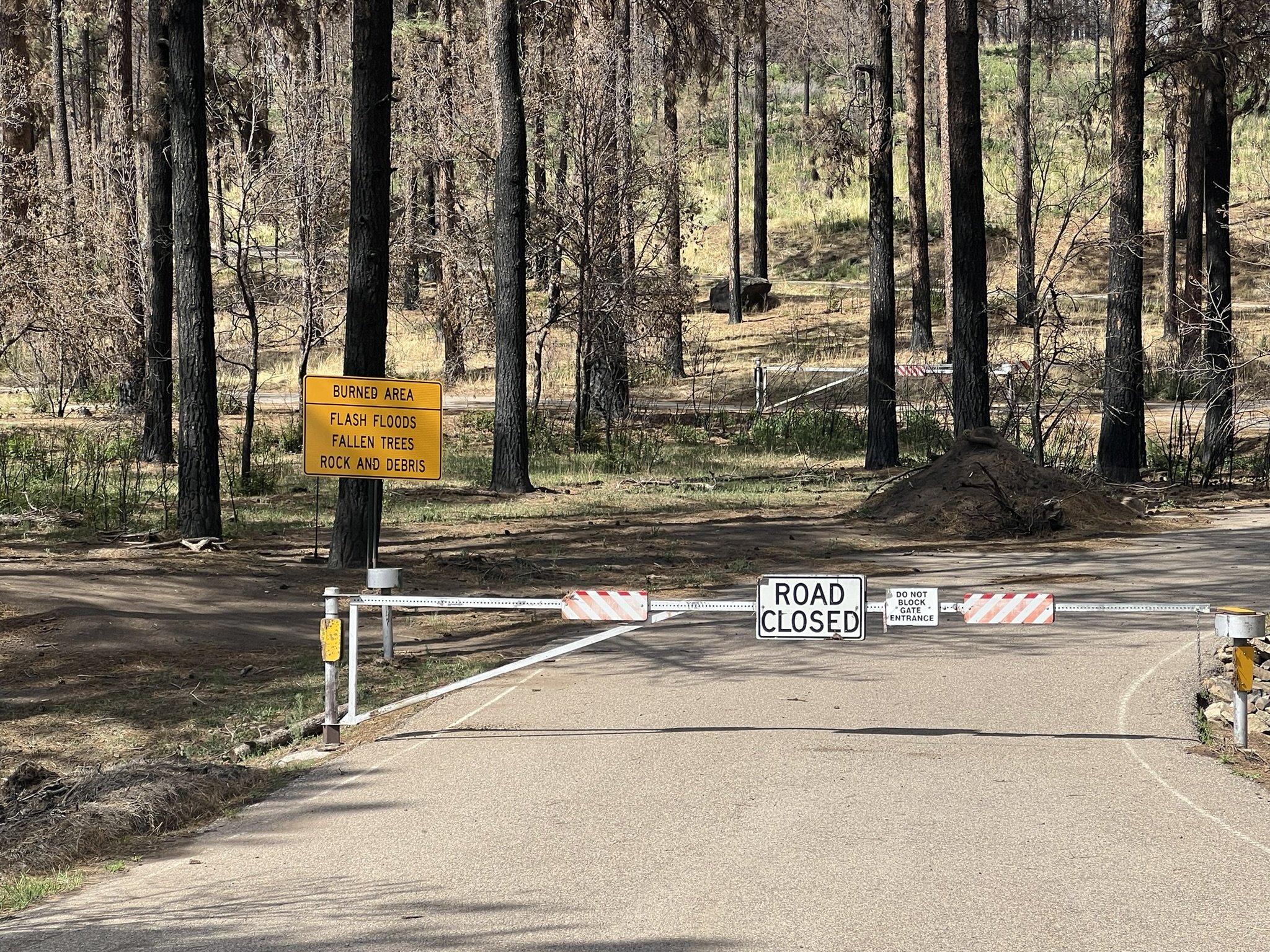 Many forest roads remain closed in the wake of the South Fork and Salt Fires of June 2024. This closure is seen June 11, 2025. (Photo by Elva K. Österreich/ SNMJC)